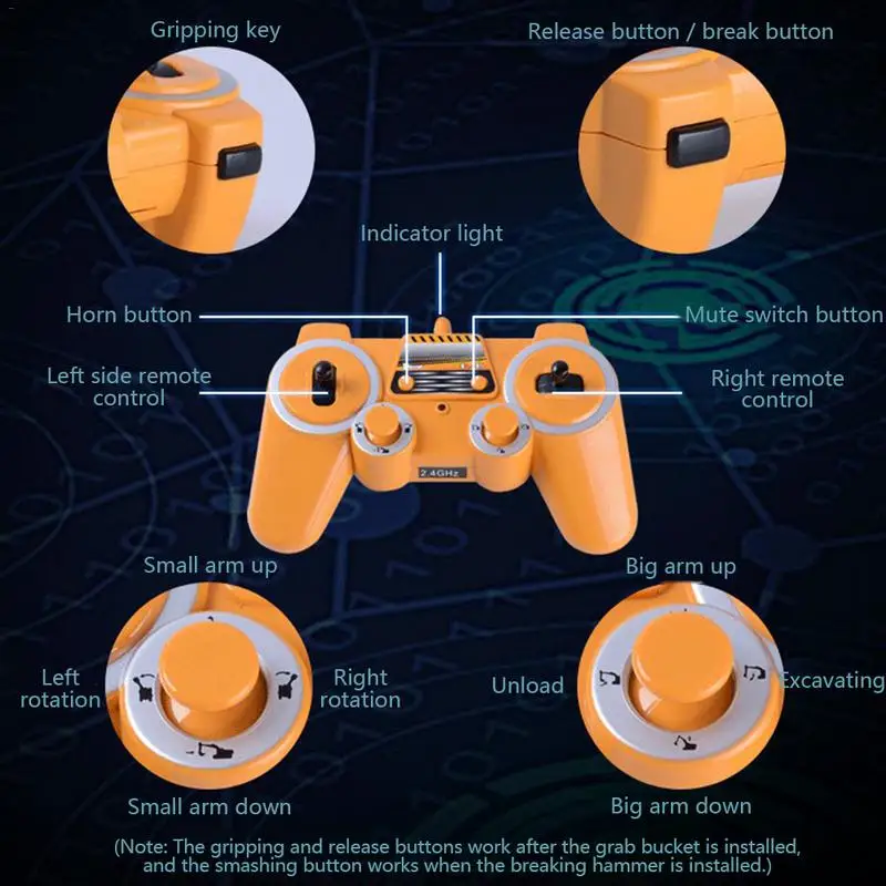 Wireless Gamepad DIY Engineering Vehicle Toy Digging Drilling Gripping 3 In 1 Alloy Excavator Remot